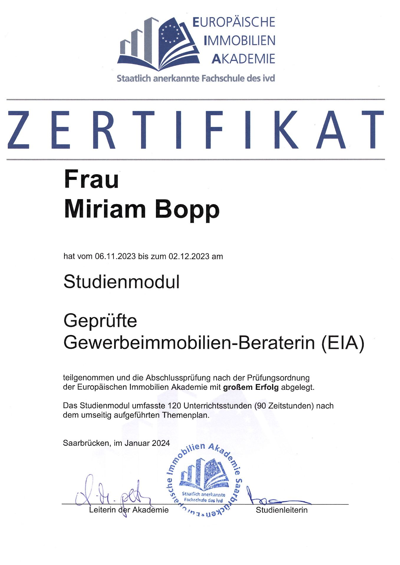 Nach Ihrer Ausbildung zur IHK-zertifizierten Immobilienmaklerin und Immobilienwirtin (WAF) im Jahr 2014 steht Sie Ihnen nun schon seit über 10 Jahren als kompetente Ansprechpartnerin für die Vermarktung und den Verkauf Ihrer Immobilie zur Verfügung.