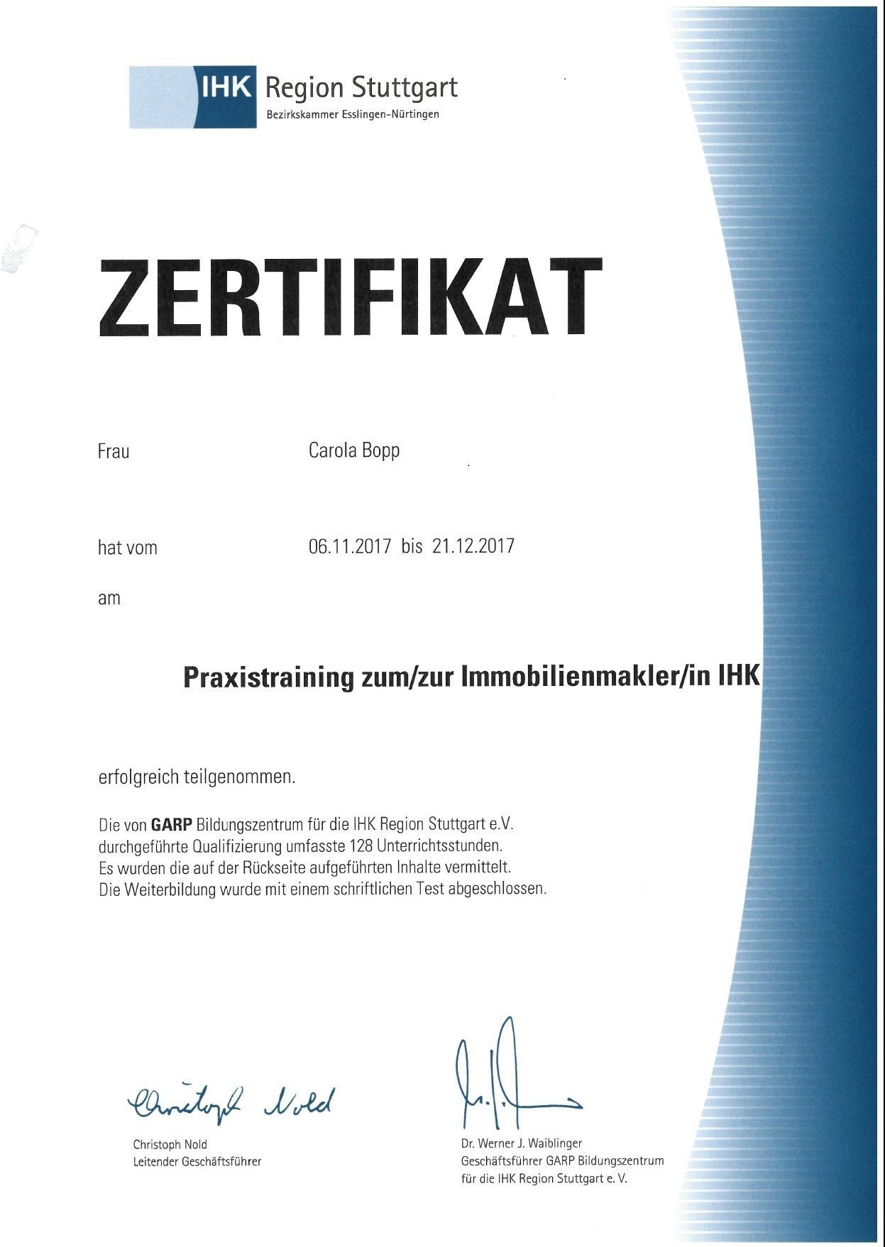 Bauzeichnerin, Immobilienmaklerausbildung (IHK)